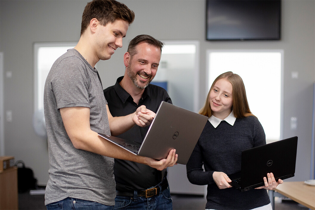 In der Softwareentwicklung machen wir aus Ideen und Anforderungen schlüsselfertige Codes. Zu unserem Handwerkszeug zählen agile Methoden wie Kanban und modernste Hardware. Der Support unserer Competence Center zur lösungsorientierten Entwicklung von Anwendungen und Schnittstellen ist dabei unsere Kernkompetenz.